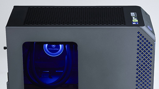 筐体は,お馴染みのGALLERIA独自PCケースで,公称本体サイズは220(幅)×440(奥行き)×480(高さ) mmと,ややスリムなミドルタワーPCケースだ。