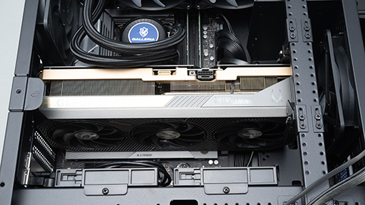 これは,グラフィックスカードが極めて頑丈なカードホルダーで固定されているのに加えて,取り扱いがシビアな16ピンコネクタが邪魔になるからだ。