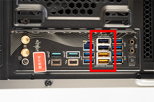 背面にある,Lightning GamingとUltra USB Powerが何かについても,簡単に説明しておこう。