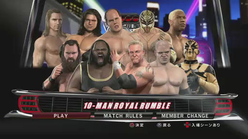 リングのさまざまな位置から対戦相手をリング外へ落とす(落とそうとする)ことができたり,残り選手が少なくなったときの演出がテレビ中継っぽくなっていたり,必殺技を使ったリング外への排除ができたりと,従来作にはなかったものを確認できる内容になっているので,シリーズのファンやWWEファンは必見だ。
