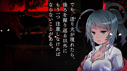 また、本日の情報解禁と共に『送り犬』のティザーサイトが、メビウスオフィシャルサイトにて公開となりました。ティザーサイトでは声優「今村彩夏(いまむらあやか)」さんナレーションによる予告映像が公開されていますので是非ご覧ください。ゲーム本編の配信日や価格、詳細情報につきましても追ってオフィシャルサイトにて随時ご案内させていただきますので宜しくお願いいたします。