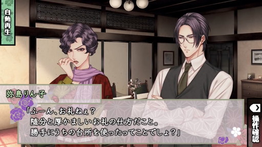 明治時代を舞台にした海軍軍人との恋愛譚ながら,本作にとって時代背景はエッセンス程度でしかない。それよりも,小説等でみられる悪役令嬢の特徴としてあげられることが多い婚約破棄と断罪が,両方描かれているのが特徴と言える。攻略対象の1人である原正毅の許嫁,志賀京が本作の悪役令嬢だ(図4)。