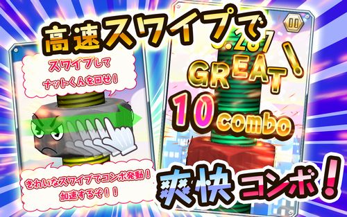 スマホ向けスワイプアクション「回せ!ナットくん」,Android版が配信開始