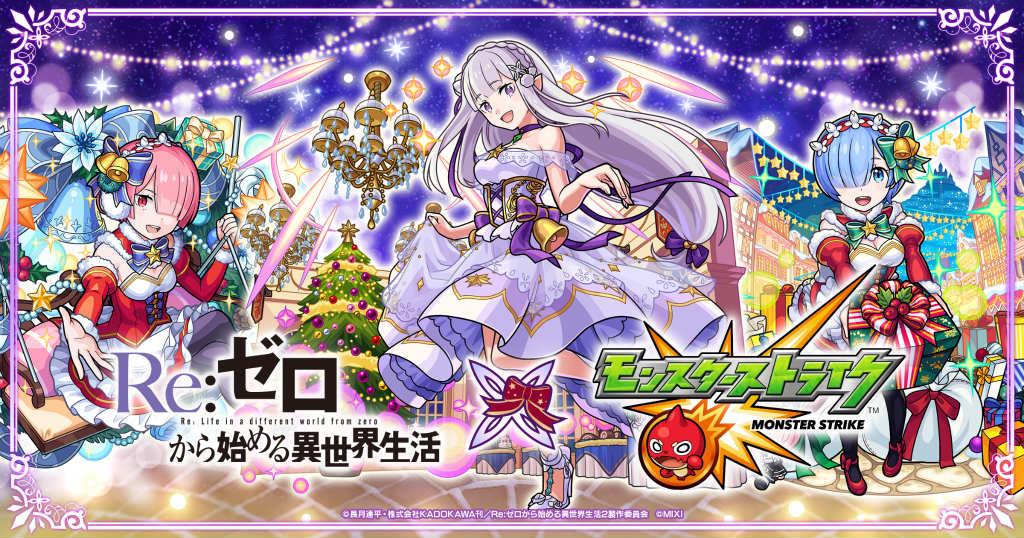 「モンスト」×「リゼロ」コラボ,2022年12月16日より開始。エミリア,レム,ラムが描き下ろしクリスマス衣装で登場