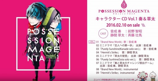 2/10発売、『POSSESSION MAGENTA』キャラクターCD Vol.1 奏&草太より、前野智昭さん、斉藤壮馬さんのコメントが到着しました!