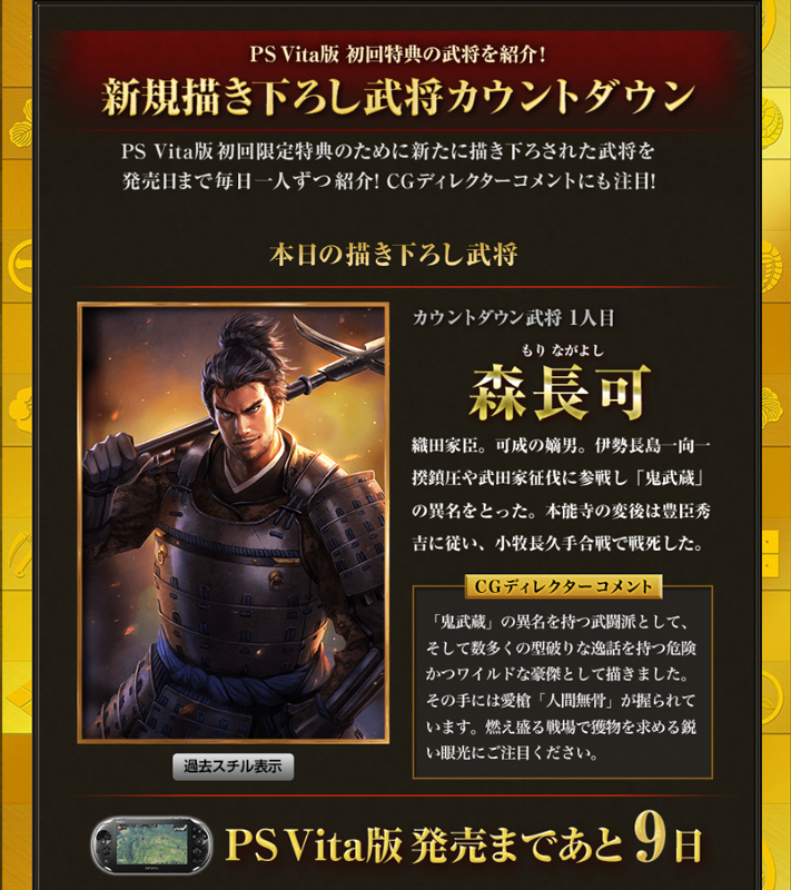 PS Vita版「信長の野望・創造 with パワーアップキット」が,発売までのカウントダウンを開始。毎日1人ずつ「新規描き下ろし武将」が公開に