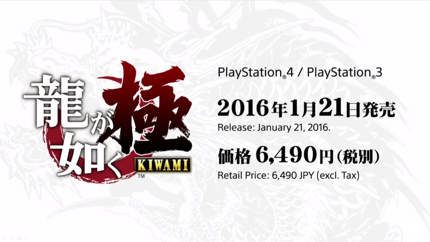 「龍が如く6」,PS4向けで2016年秋発売決定。初代リメイク「龍が如く 極」は2016年1月21日リリース