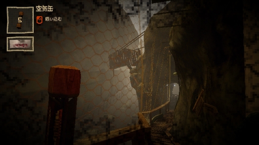 空気缶を使うたび,プレイヤーキャラの口が血まみれになっていく。これを使い続けたらどうなってしまうのだろうか……?