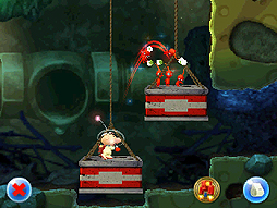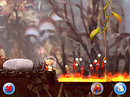 ![]() 投げたい所にタッチすると,タッチした場所にピクミンを投げることができる |