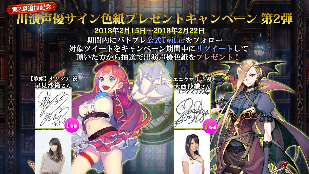 「バトル オブ ブレイド」,新ヒーロー“【歌姫】セリシア”と”エニクマリア”が登場