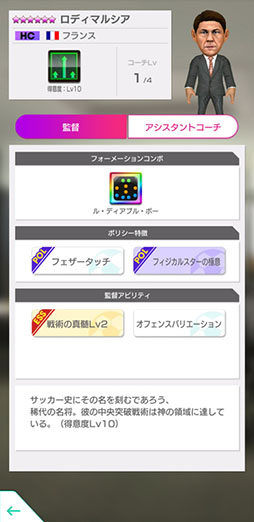 該当の選手を編成すると強くなるフォーメーションコンボ「ル・ディアブル・ボー」と、「戦術得意度Lv10」を持つ新★6監督「ロディマルシア」が登場! 期間中に開催される特別ミッション「10試合行う」で獲得できます。