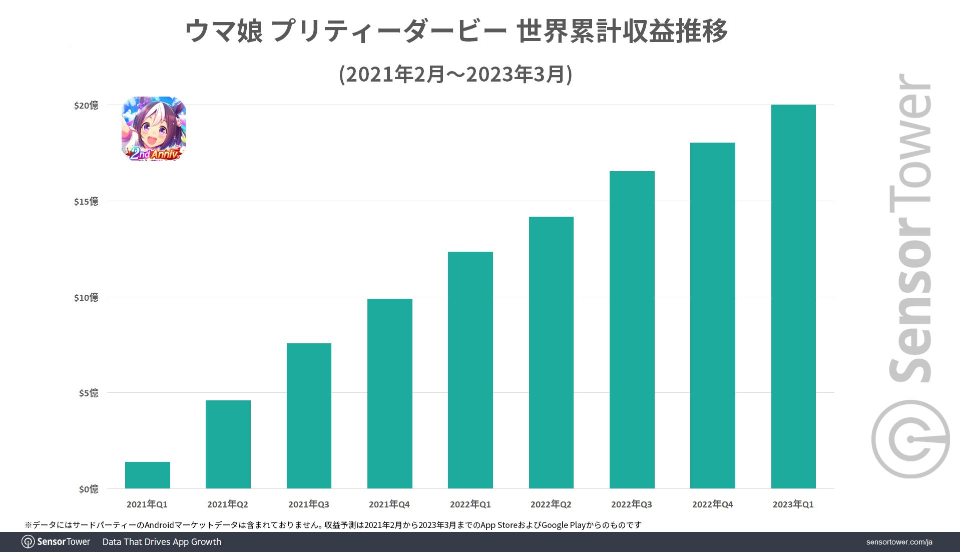「ウマ娘 プリティーダービー」の世界累計収益が20億ドル(約2650億円)を突破。2周年記念キャンペーン期間には12日間連続でApp Store首位