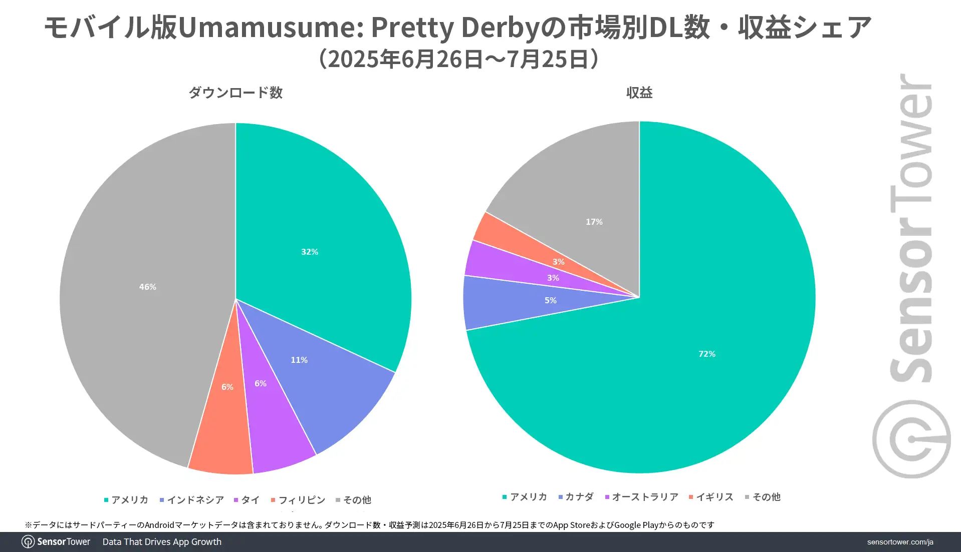 英語版「ウマ娘」のトップ市場はアメリカで,コアゲーマーから支持される。Sensor Towerが分析レポートを公開