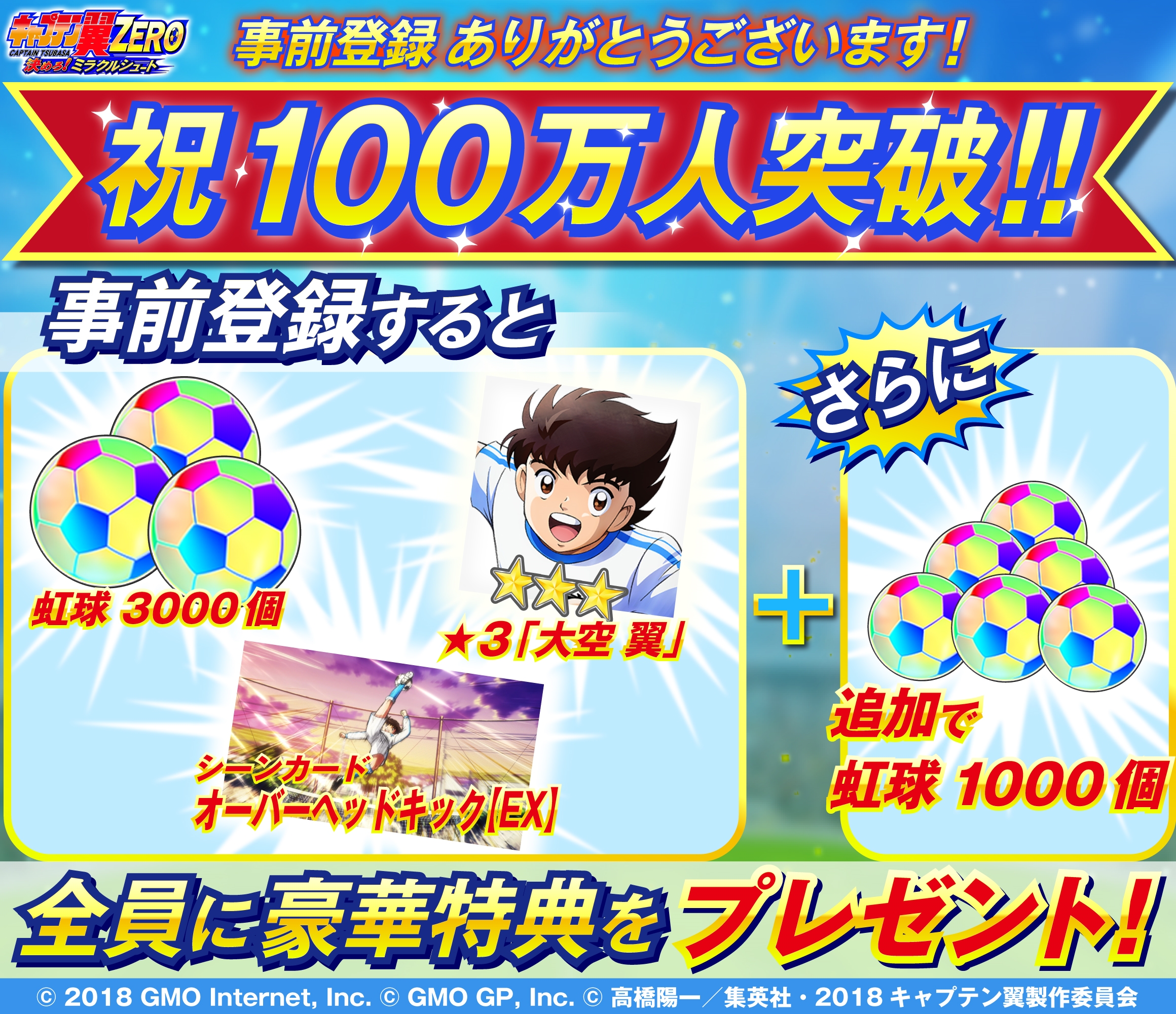 「キャプテン翼ZERO」,事前登録者数が100万人を突破。虹球1000個の追加プレゼントが決定