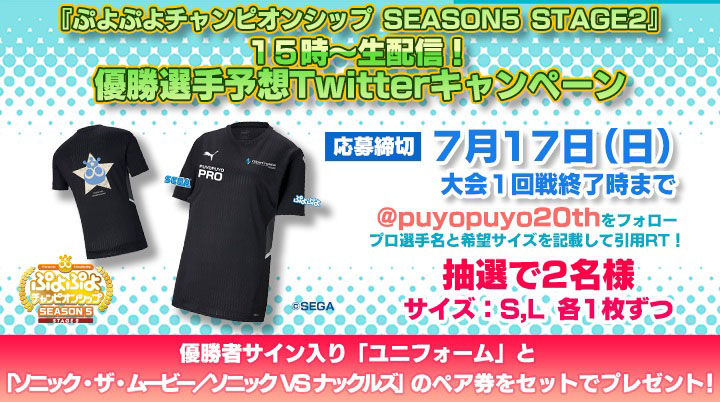 セガ公式プロ大会「ぷよぷよチャンピオンシップ SEASON5 STAGE2」優勝選手予想Twitterキャンペーンを開催