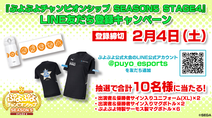 「ぷよぷよチャンピオンシップ SEASON 5 STAGE4 決勝トーナメント」,開催を記念してL INE友だち登録キャンペーンを開催