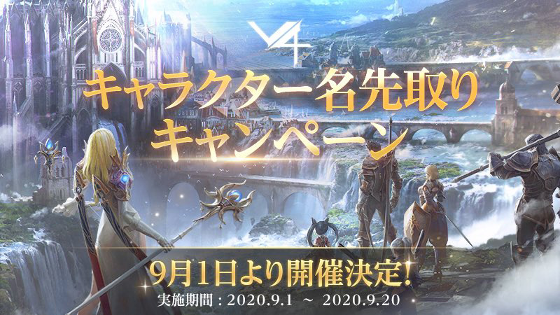 早い者勝ち。新作MMORPG「V4」,全サーバーでユニークとなるキャラ名の“先取りキャンペーン”が9月1日18時に開始へ