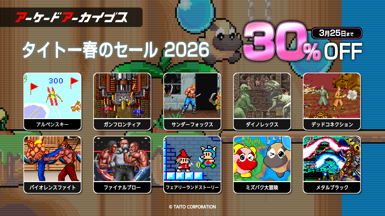 「ガンフロンティア」「サンダーフォックス」「ファイナルブロー」「メタルブラック」など,タイトーのアケアカ10作品が30%オフに