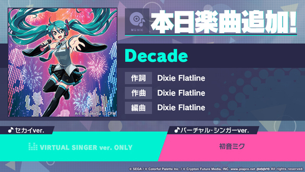 「プロジェクトセカイ」,Decadeをリズムゲーム楽曲に追加