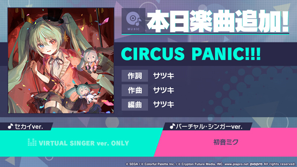 「プロセカ」,CIRCUS PANIC!!!をゲーム内に本日実装