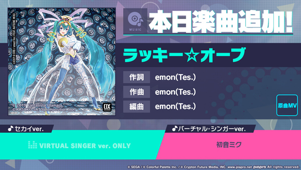 「プロジェクトセカイ」,ラッキー☆オーブを楽曲に追加