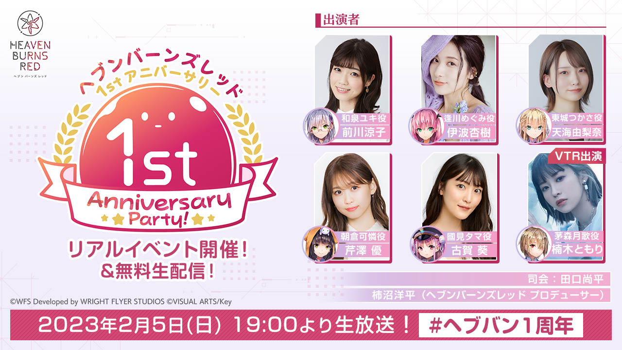 「ヘブンバーンズレッド」の1周年を記念する公式生放送「ヘブンバーンズレッド 1st Anniversary Party!」,本日19:00より公式YouTubeチャンネルで配信