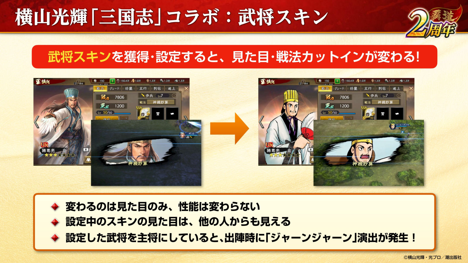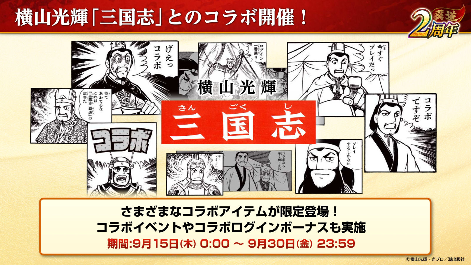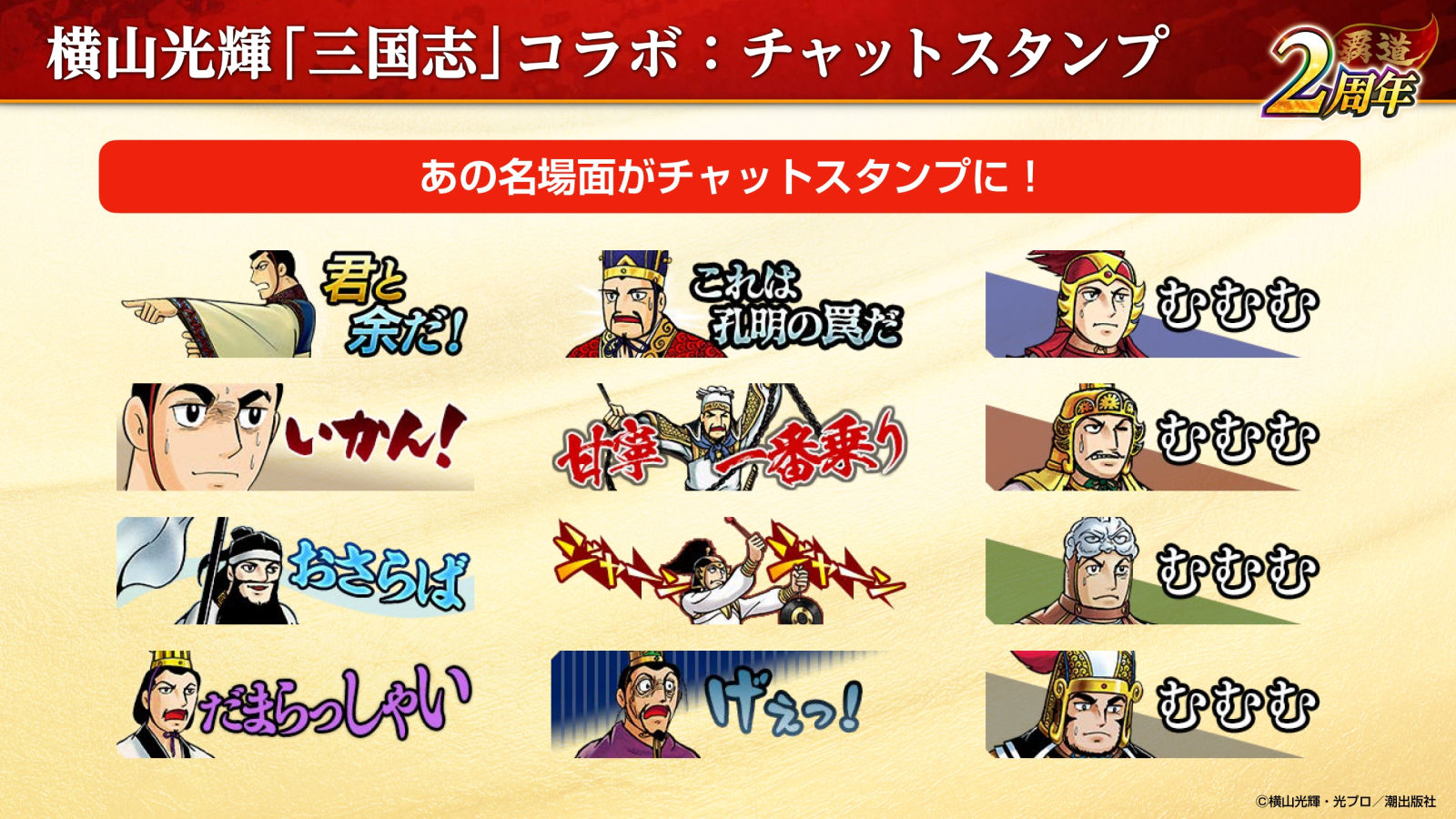 「三國志 覇道」と横山光輝氏の「三国志」がコラボ。武将の見た目を変えられるスキンや漫画の名場面を再現したチャットスタンプを入手できる