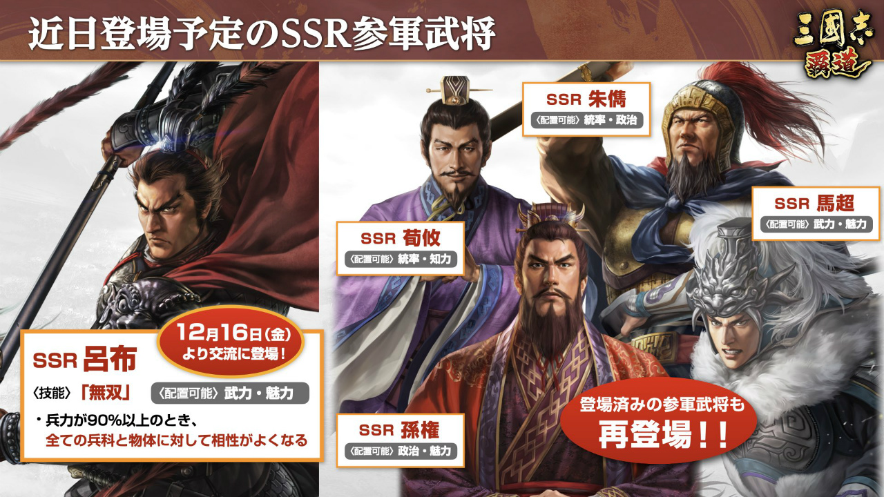 「三國志 覇道」,新長期イベント“将星乱舞”を開催。新UR武将として甄氏と魏延も登場