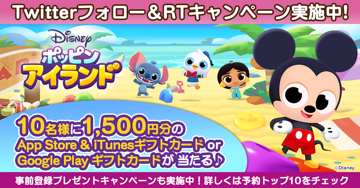「ディズニー ポッピンアイランド」,Twitterフォロー&リツイートキャンペーンが本日スタート