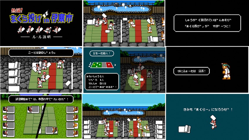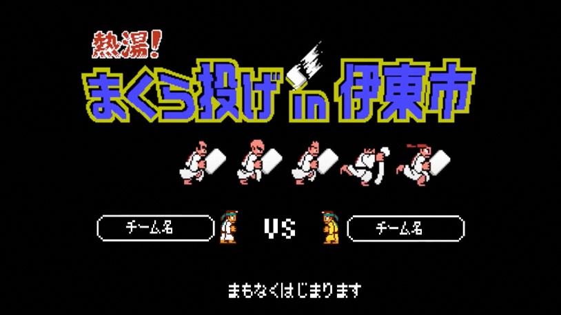 • 画像ギャラリー No.003 | “くにおくん”が「全日本まくら投げ大会 in 伊東温泉」とコラボ。試合の映像がくにおくん風になり,まくら投げを楽しめるゲームを公開予定