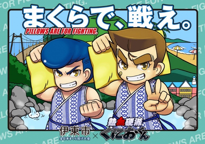 “くにおくん”が「全日本まくら投げ大会 in 伊東温泉」とコラボ。試合の映像がくにおくん風になり,まくら投げを楽しめるゲームを公開予定