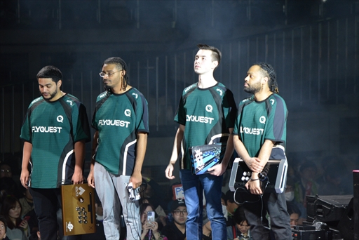 FlyQuestは続く中堅戦で,ChrisCCH選手のエドを投入する。1戦目はぷげら選手がストレートで勝利するも,2戦目以降はラウンドを重ねるごとにChrisCCH選手の置いた打撃や差し返しの成功率が上がり,逆転勝利に成功する。これでFlyQuestはPunk選手が勝てば優勝という状況を作り出した。