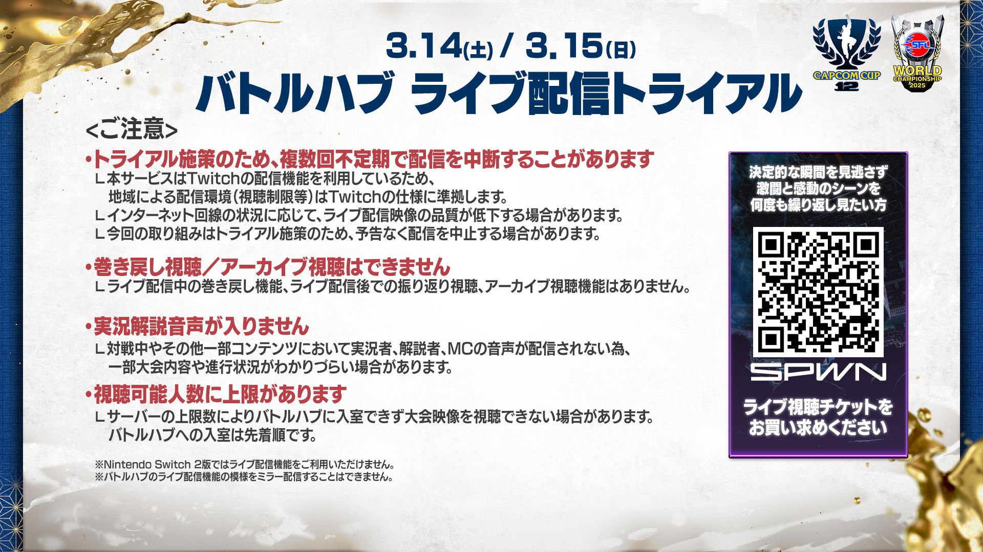 • 画像ギャラリー No.001 | 「スト6」,世界大会「CC12」「SFL:WC2025」のチケット新価格を発表。2DAYが1500円,1DAYが900円に変更され,決勝戦はゲーム内で視聴可能に