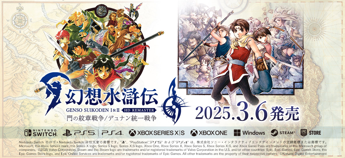 シリーズ第1作&2作目がリマスターされて登場。「幻想水滸伝 I&II HDリマスター 門の紋章戦争 / デュナン統一戦争」本日発売