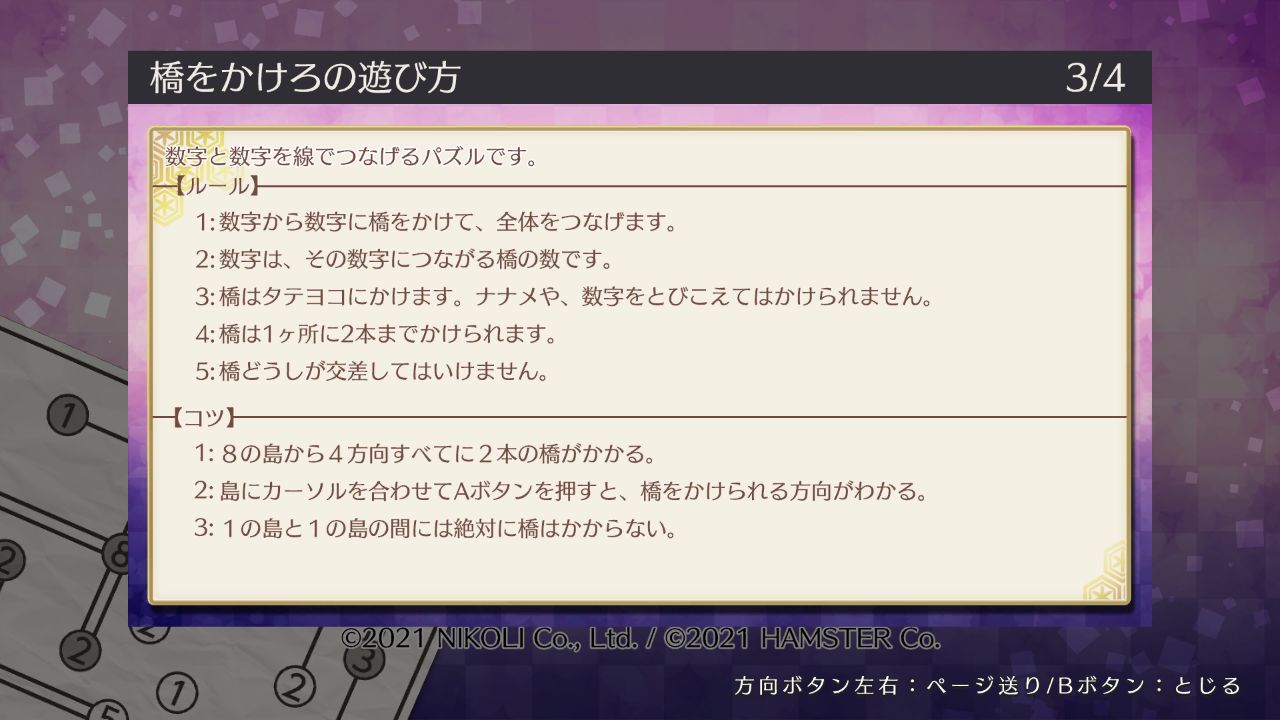 数字を繋ぐシンプルパズル。Switch「ニコリのパズルS 橋をかけろ」とPC/Xbox One「ニコリのパズルW 橋をかけろ」が2月9日発売へ