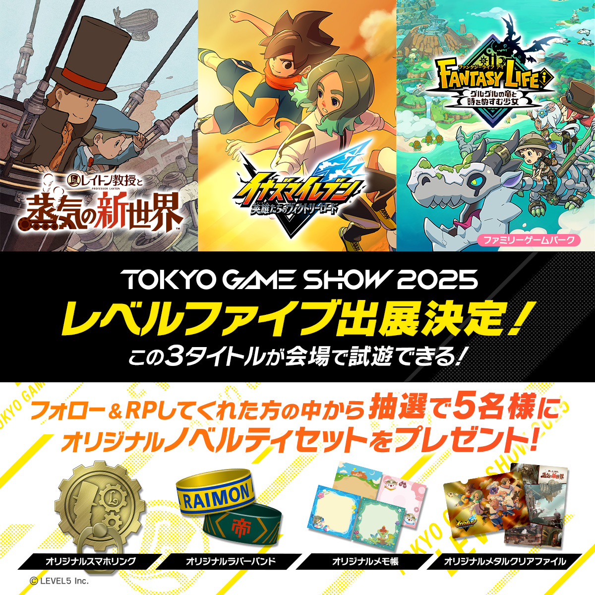 「レイトン教授と蒸気の新世界」「イナズマイレブン 英雄たちのヴィクトリーロード」などを試遊展示。レベルファイブ,TGS 2025出展情報を公開