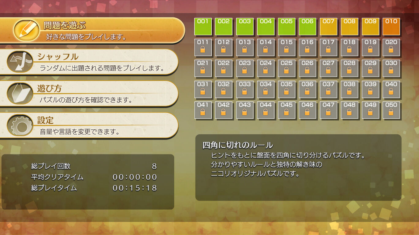 ニコリのパズルS 四角に切れ