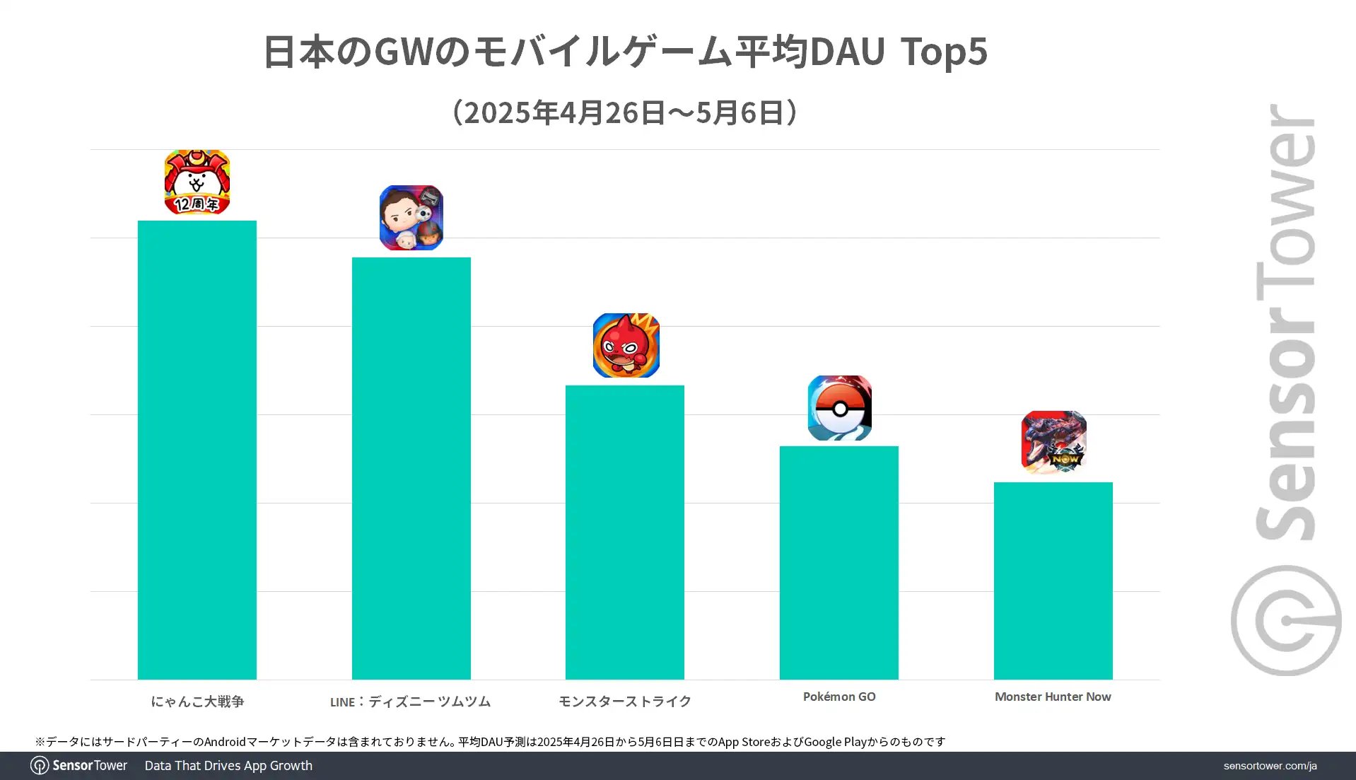 GWのDL数は「Delta Force」,収益は「ポケポケ」,DAUは「にゃんこ大戦争」がトップ。国内モバイルゲーム市場の分析レポートが公開に