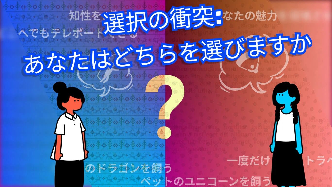 選択の衝突: あなたはどちらを選びますか 心を揺さぶる300のジレンマが待ち受ける選択の世界へ飛び込もう。あなたの進路、あなたの運命 - 賢明な選択を!