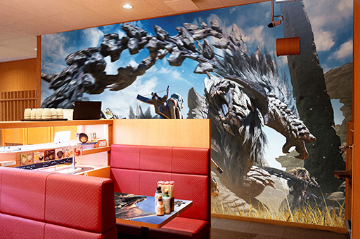 このほか,2月14日からは新宿三丁目店(東京都),福島ラグザ阪神店(大阪府),那覇国際通り店(沖縄県)の3店舗を,「モンスターハンター」の世界観を楽しめるスペシャルコラボ店として装飾する。スペシャルコラボ店舗の沖縄初上陸を記念して,「ゆいレール」の「那覇空港駅」と「県庁前駅」に,コラボビジュアルが登場するとのことだ。