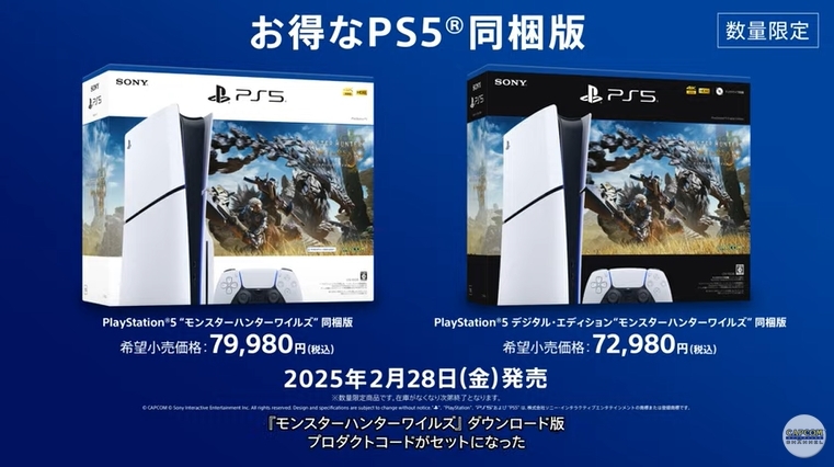 「モンスターハンターワイルズ」のダウンロード版とPS5本体がセットになった同梱版を2月28日に発売。個別で買うよりソフト分お得に