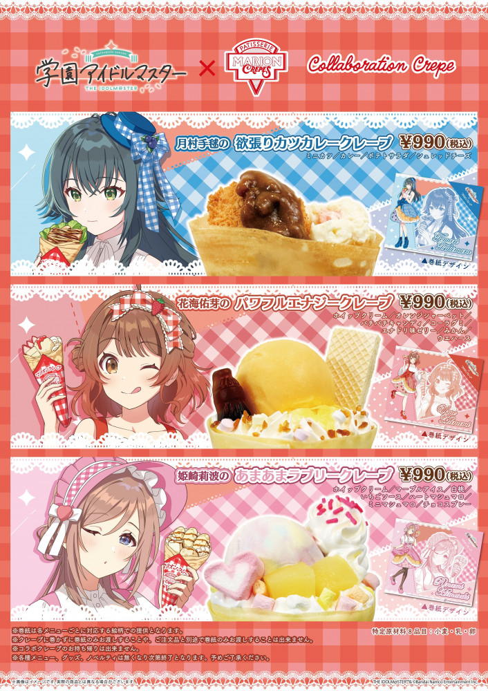 「学園アイドルマスター」×マリオンクレープ,コラボを3月21日に開始。月村手毬,花海佑芽,姫崎莉波がクレープイメージの衣装で登場