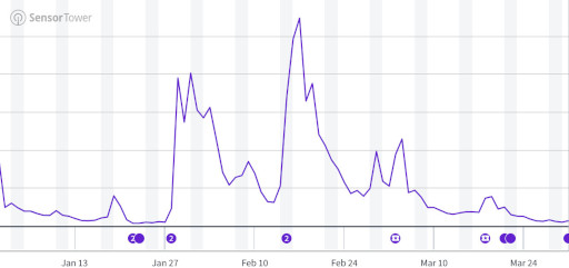 2024年10月〜12月に続き,今期も1位は「Pokémon Trading Card Game Pocket」となった。拡張パック「時空の激闘」を1月30日に,拡張パック「超克の光」を2月28日に,拡張パック「シャイニングハイ」を3月27日に実装し,そのたびに収益を伸ばしている。