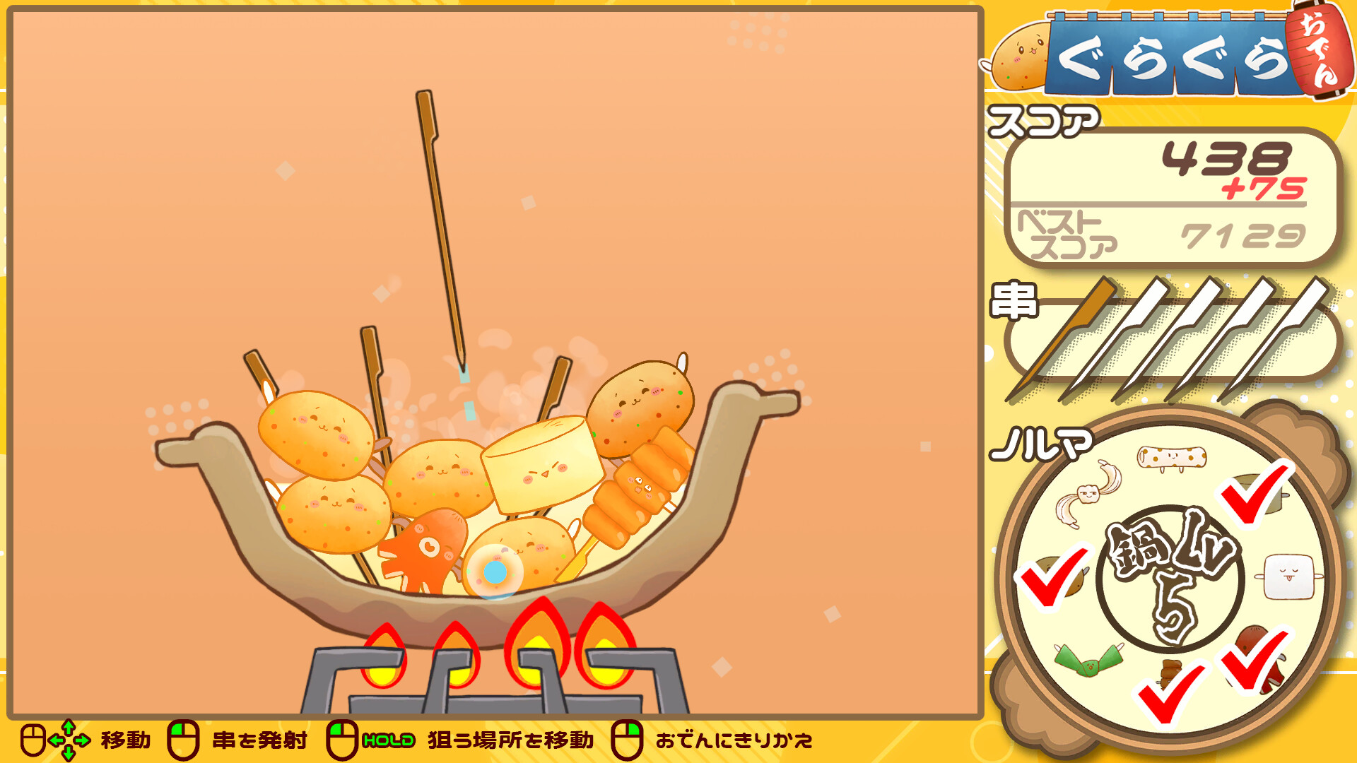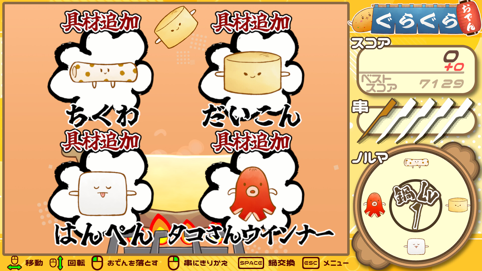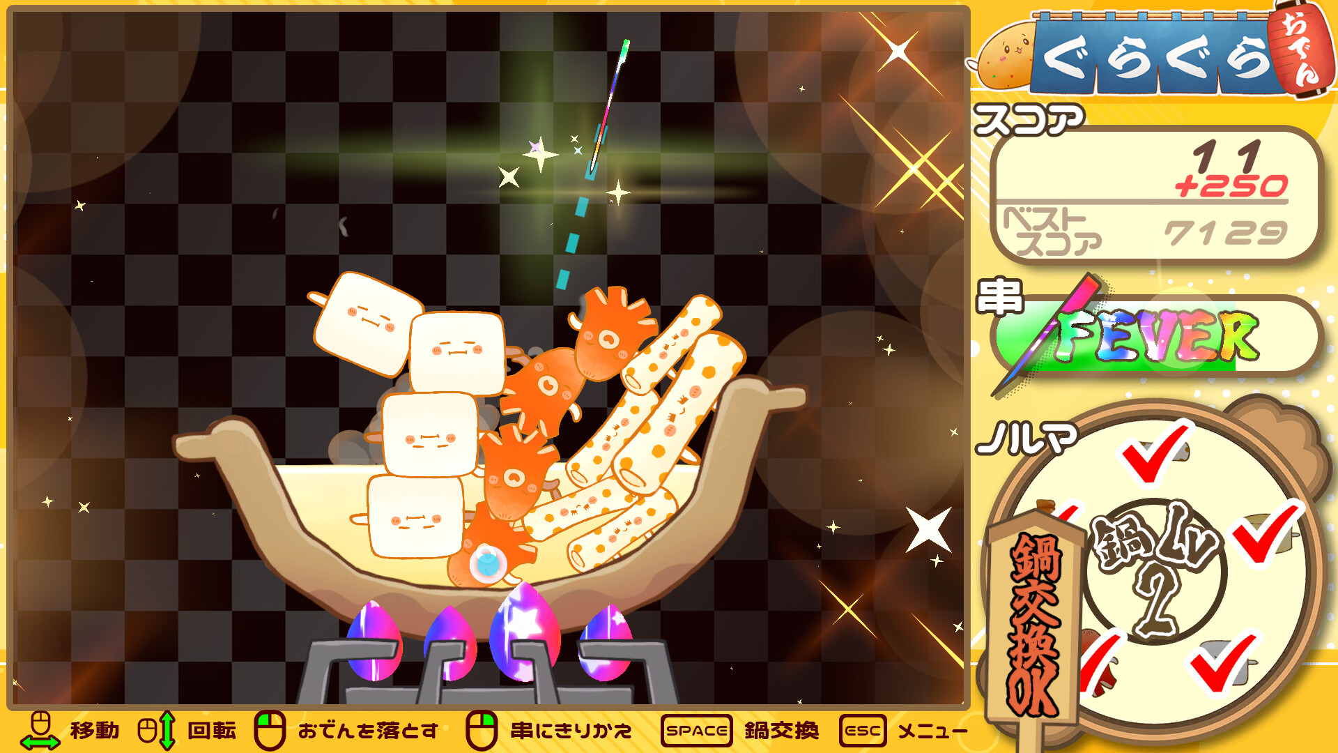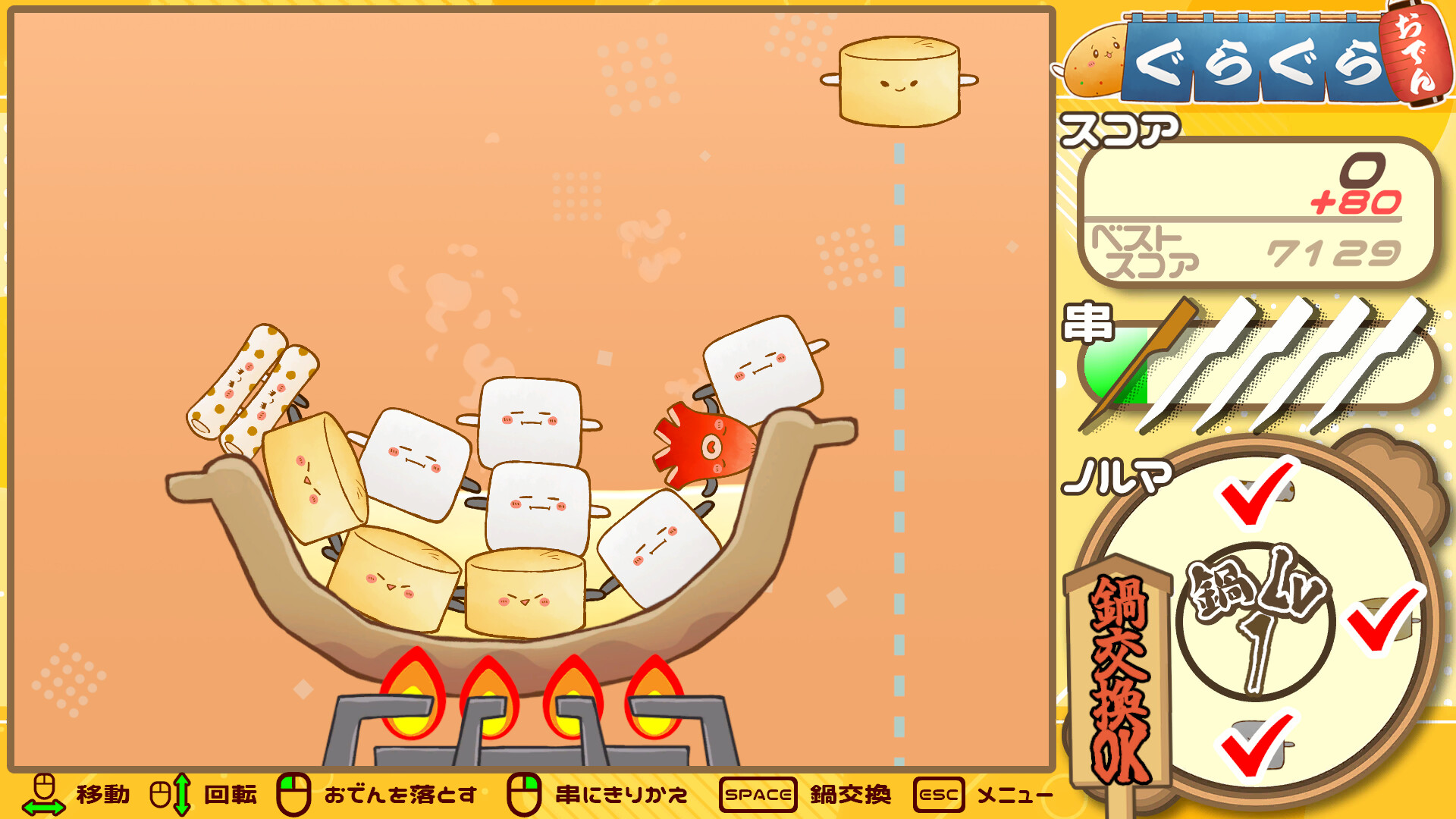実況者グループ「幕末志士」開発のバランスパズル「ぐらぐらおでん」がSteamで発売へ。具材の連結や串を利用してハイスコアを目指せ!