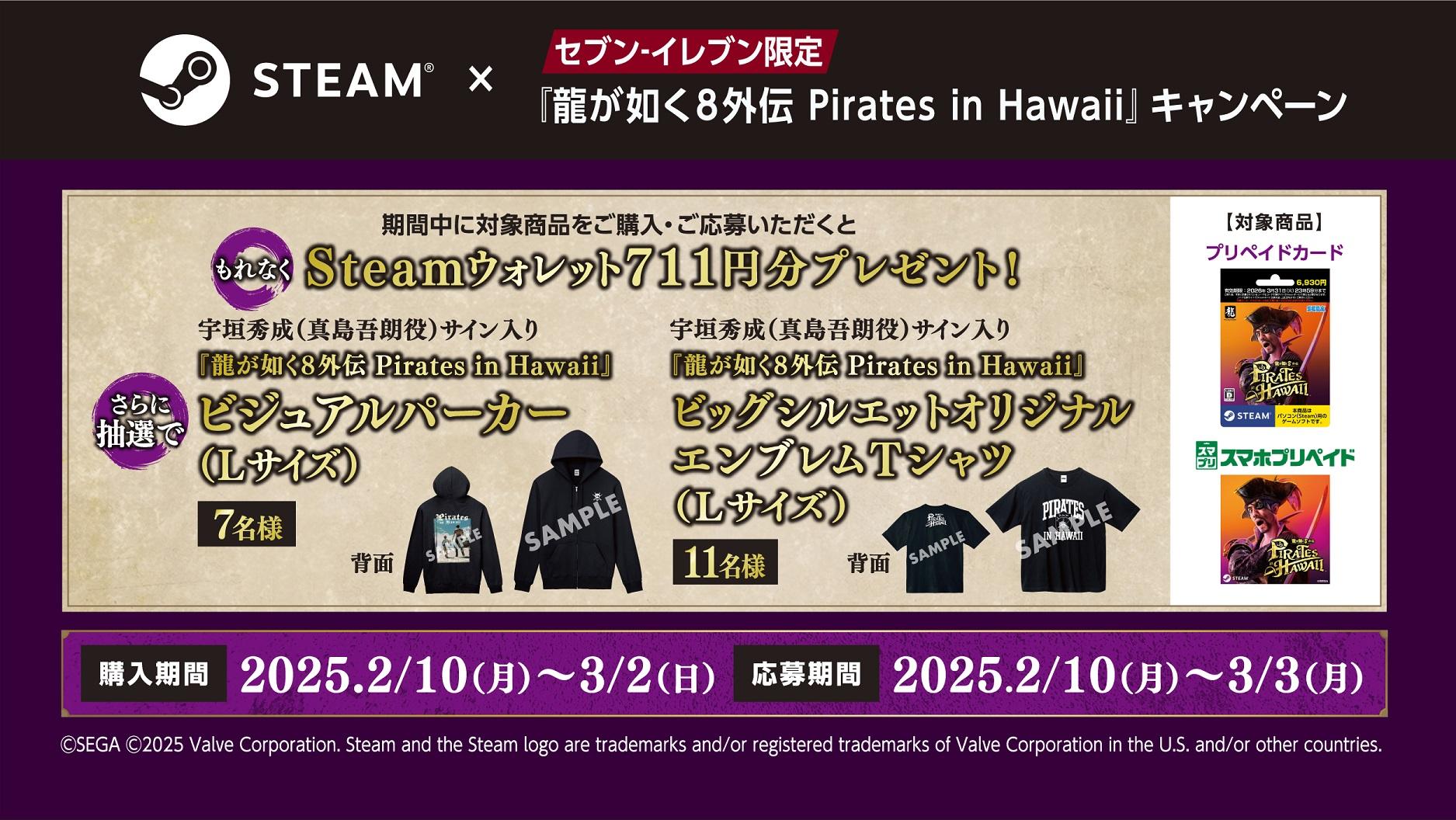 「龍が如く8外伝 Pirates in Hawaii」Steamダウンロードカード購入プレゼントキャンペーンを本日開始。応募者全員が711円もらえる