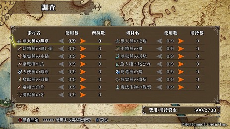 モンスターの召喚と大魔法の使用には魔力=MP を消費します。MP は最初から所持している分に加え、ターンごとに増加する分もあり、それらを駆使しながら戦います。安全が確保された遺跡を調査!敵を退け、安全が確保された調査地点では資金や素材を消費することで「調査」を行うことができます。