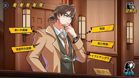 特殊モード「法廷対決」などで真実を暴いていく。このモードはフルボイスの論戦となっているので,相手を一気に論破する醍醐味や,ミスした時のおふざけボイスも楽しめるという。