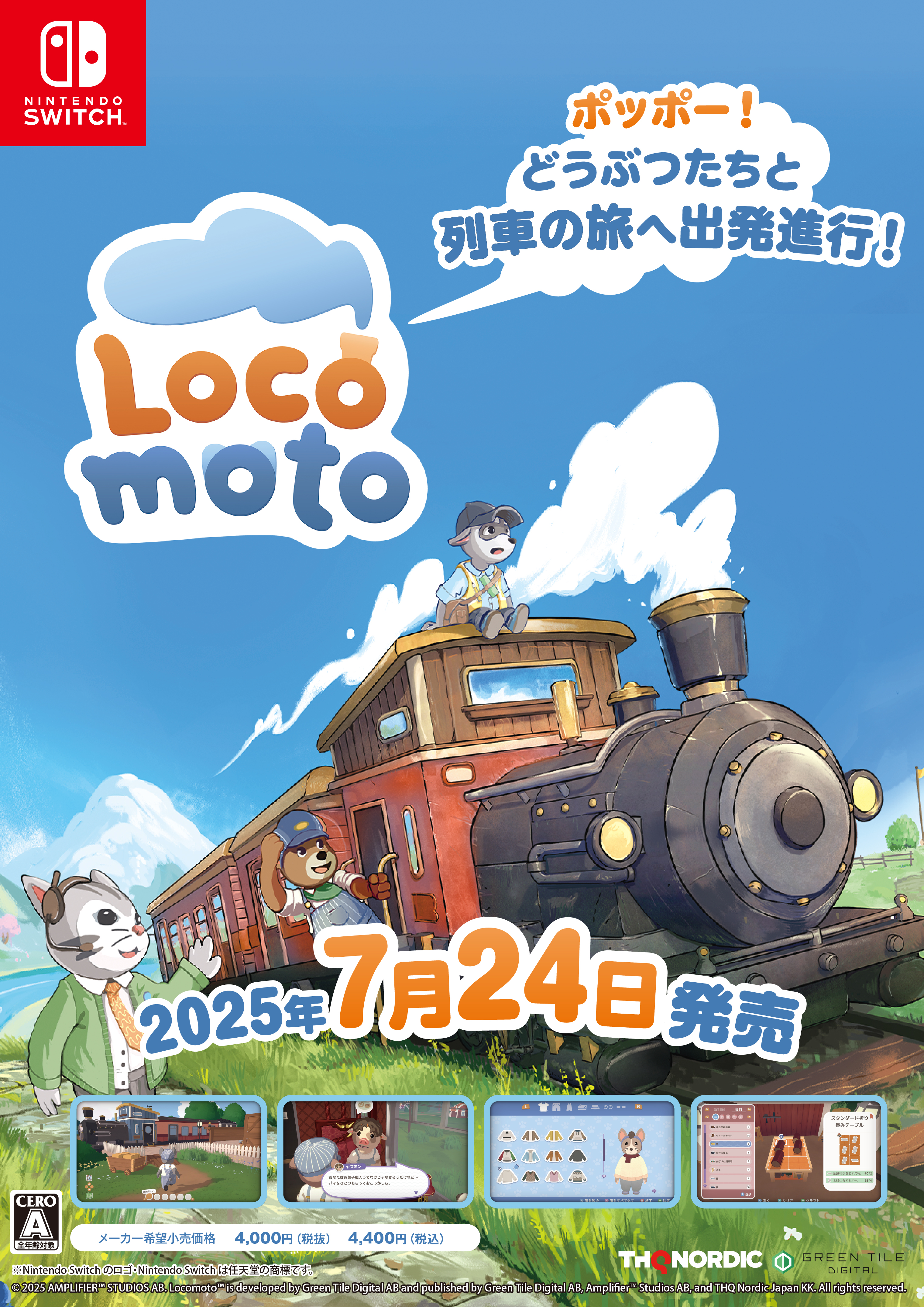ほんわか列車ライフシム「ロコモト Locomoto」,Switch版を本日発売。蒸気機関車の車掌となって,動物の乗客たちを世話していこう