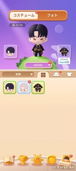 コスチュームとミニルームは,自分好みにカスタマイズして楽しめる要素だ。コスチュームはラッキーボックスで手に入る。設定できるのはヘアスタイルと服の2種類で,メンバーごとに自由にカスタマイズ可能。今回のメディア向け説明会では,特別に「Super」コスチュームを見せてもらえたので,その様子を紹介しよう。![]() |