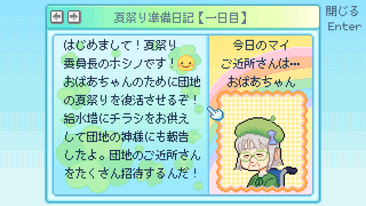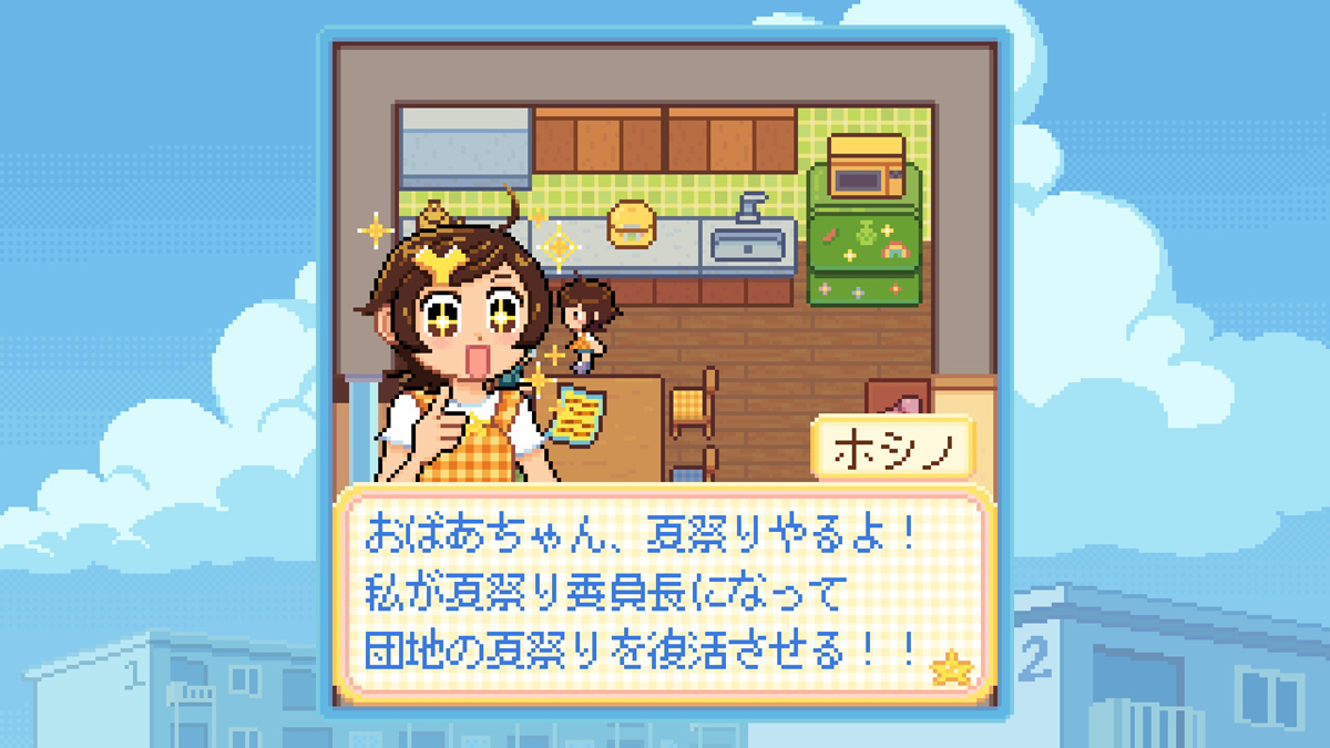 大好きなおばあちゃんのために団地の夏祭りを復活させよう。「Danchi Days」は,明るく楽しいゲーム体験の中に,社会的なメッセージをほどよく組み込んだADVだ[BitSummit]
